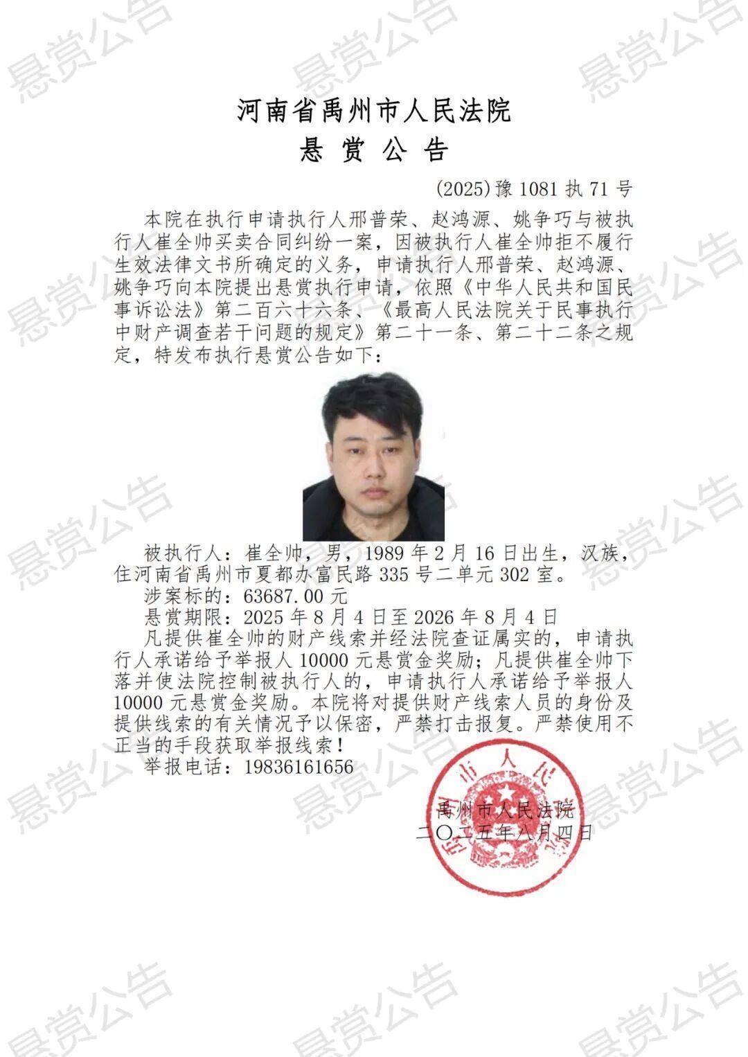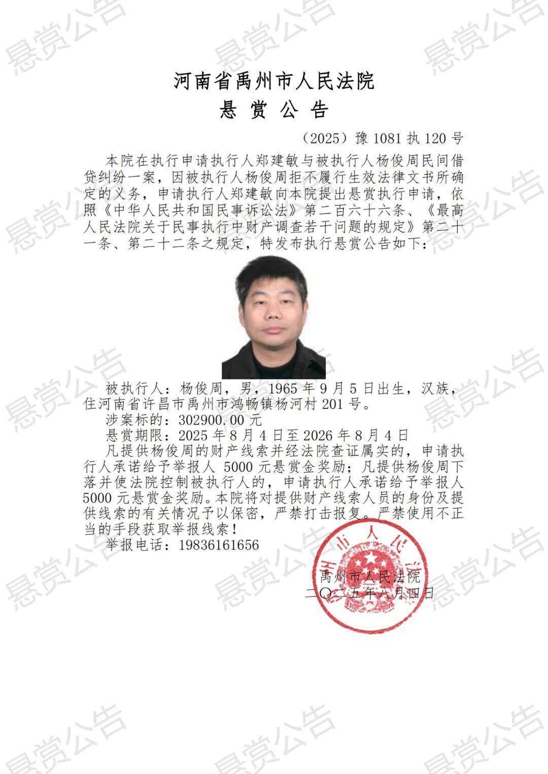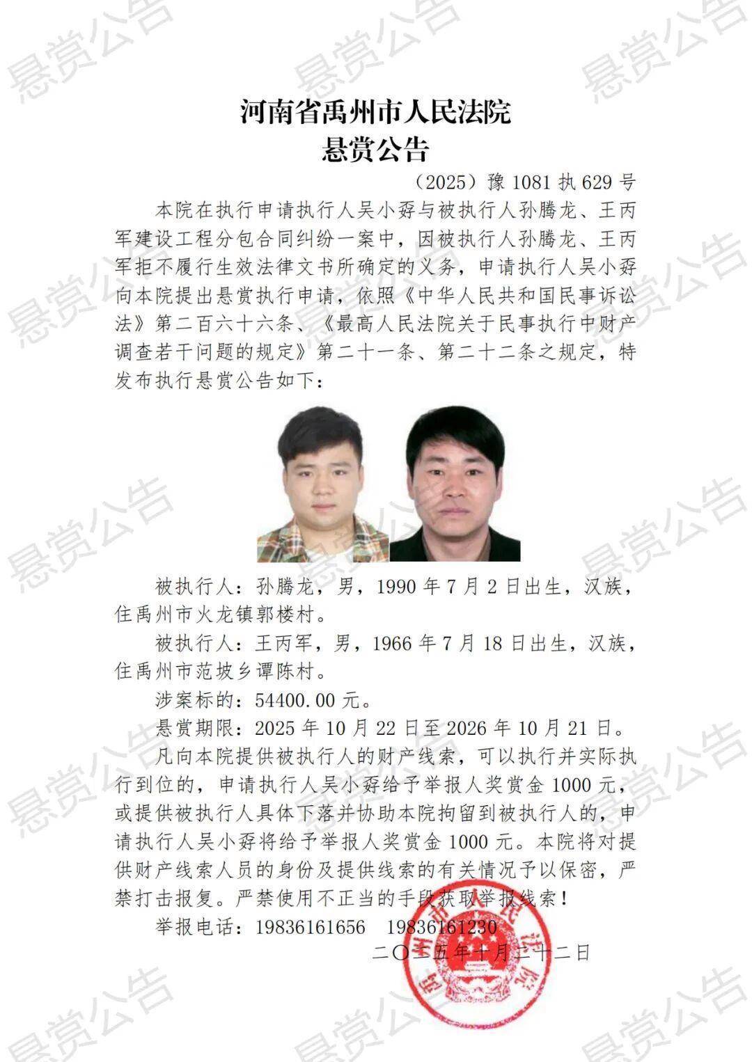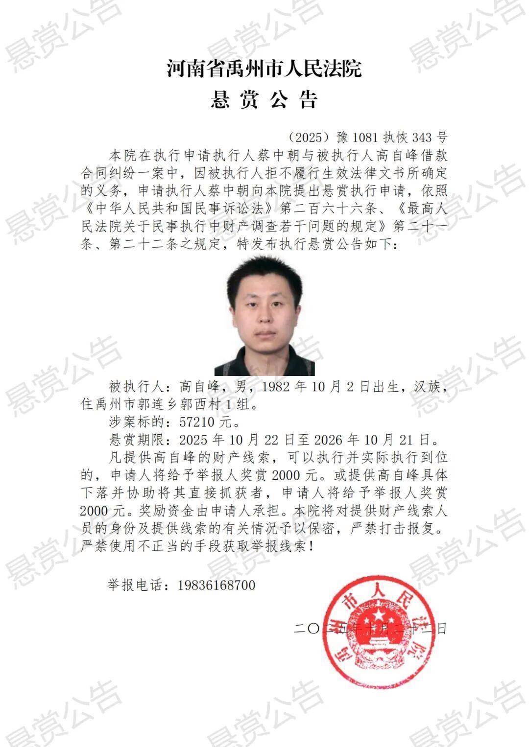 10月27日百事达配资,河南禹州市人民法院发布悬赏公告。