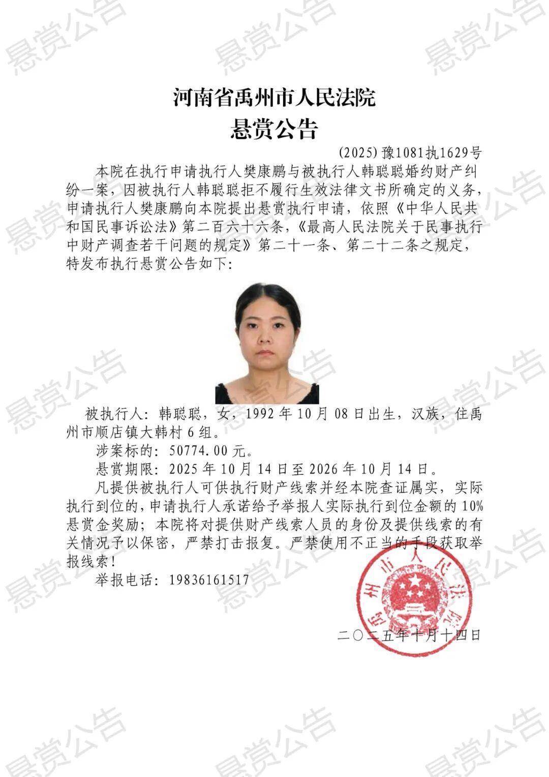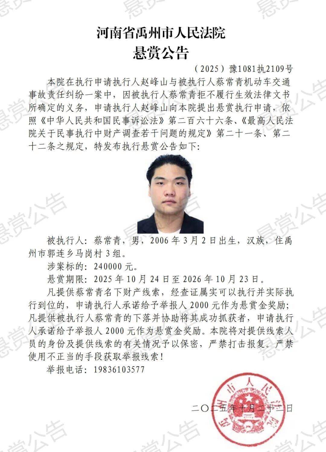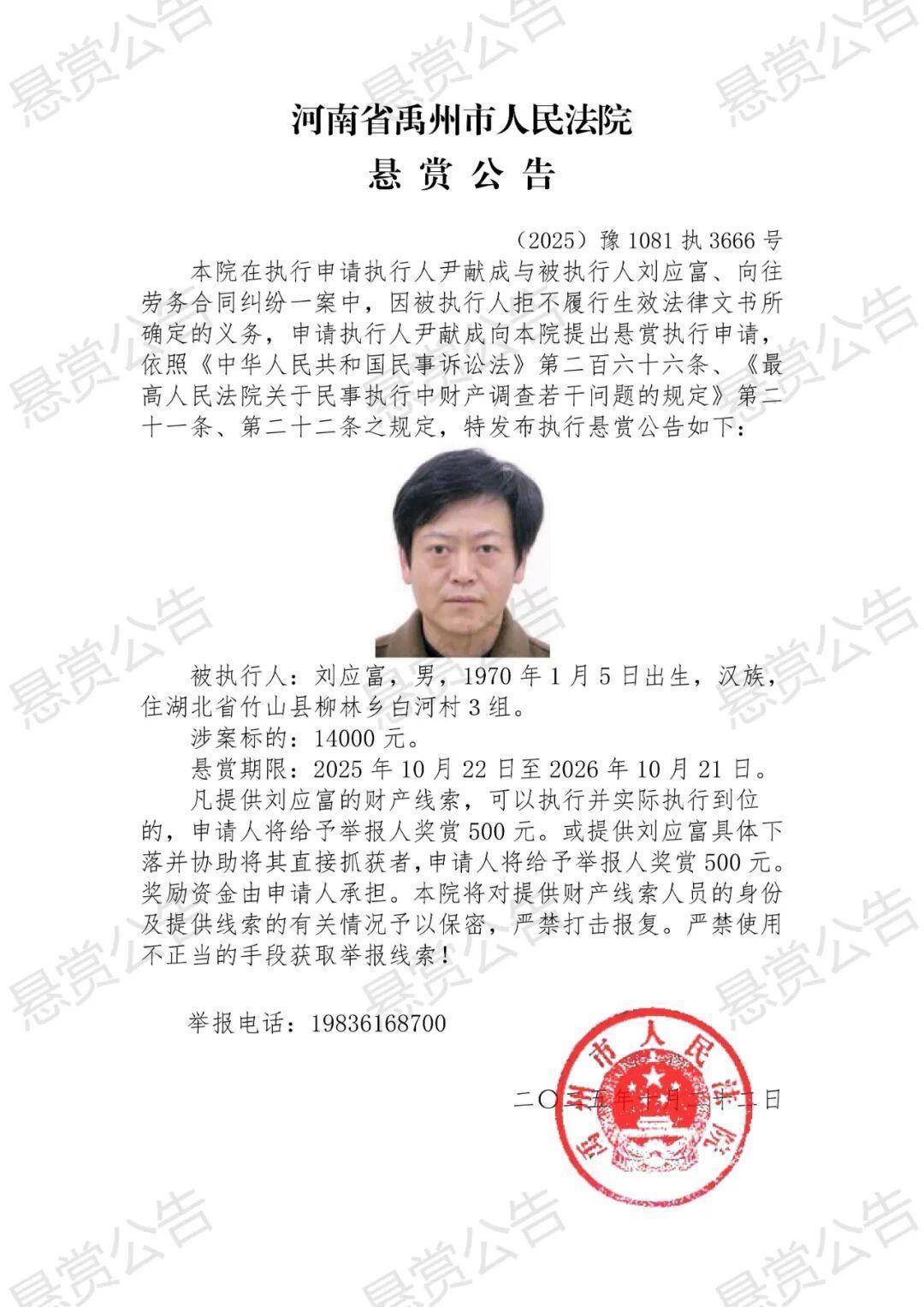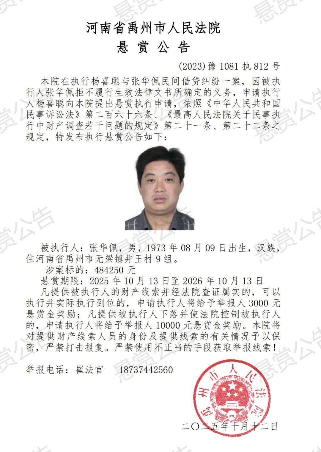10月27日百事达配资,河南禹州市人民法院发布悬赏公告。